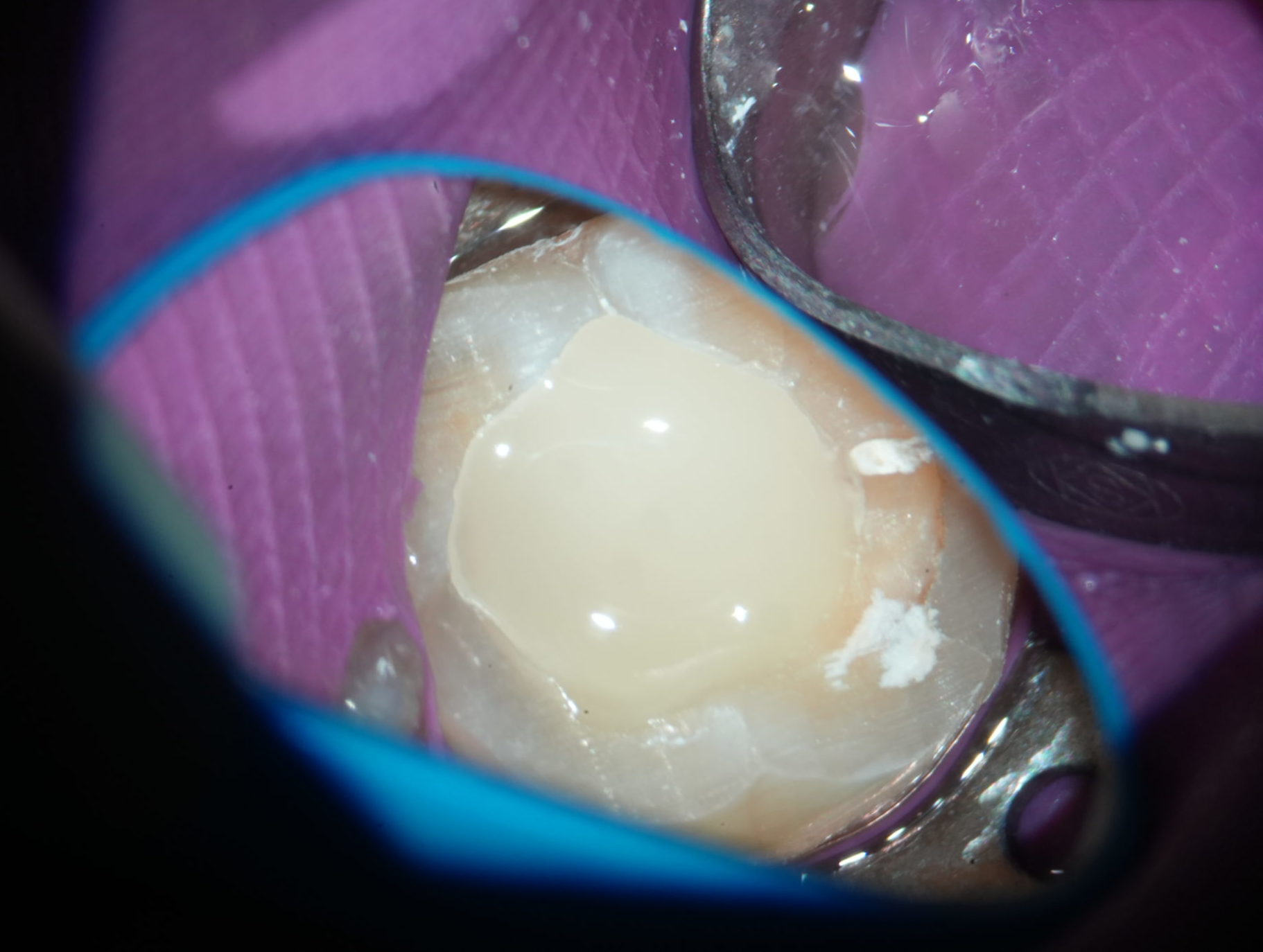 ラバーダム防湿法を行い、治療中に歯の中に唾液や細菌が入ることを防ぎます。