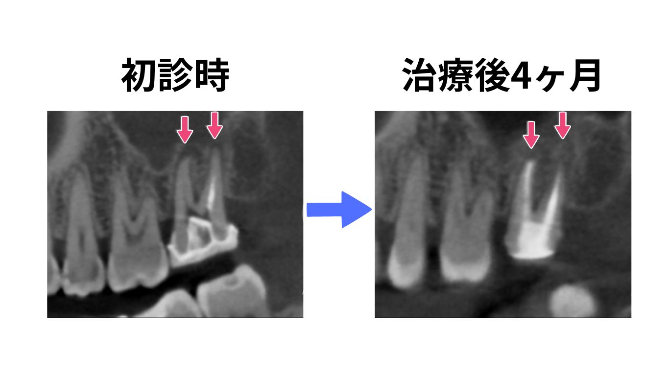 根尖部の黒く抜けていた部分がなくなっているのが確認できます。